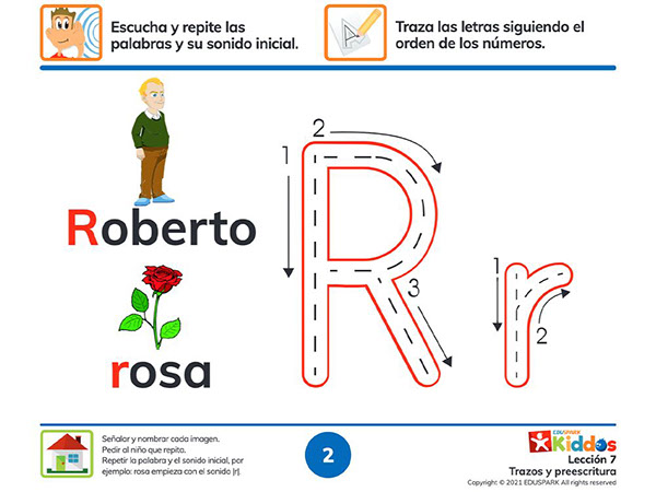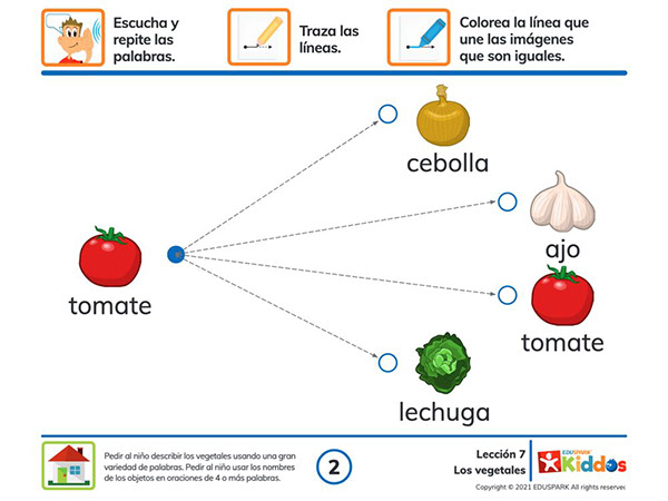 La efectividad de nuestros cursos para construir vocabulario y habilidades lingüísticas se basa en principios de neurociencia que sugieren que las conexiones neuronales se fortalecen con el uso repetido, con la variedad y velocidad de los estímulos e integrando palabras de la misma categoría en un contexto significativo. Es por eso que sugerimos que los niños usen cada lección durante dos semanas para crear nuevos circuitos y reforzar su desarrollo neurológico.